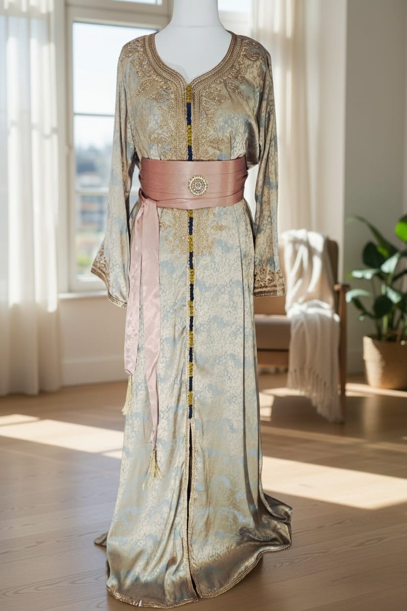 The Ania Dress combines understated elegance with intricate craftsmanship. Featuring delicate embroidery along the neckline and front, this dress is finished with a soft blush waist belt and decorative buckle for a flattering fit. Perfect for refined occasions, it offers timeless style with effortless comfort.